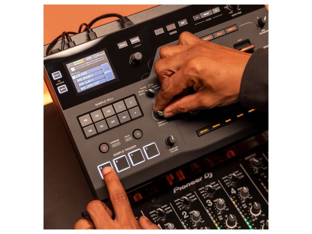 Tieto efekty sa ovládajú jedným gombíkom a fungujú nezávisle od hlavnej sekcie FX, čo umožňuje spracovávať vzorky oddelene od zvuku skladby. Viacfarebný displej zobrazuje základné informácie o výkone, ako sú BPM, parametre FX, výber vzoriek a vstupné a výstupné úrovne. Táto vizuálna spätná väzba podporuje istú obsluhu počas zložitých rutín.