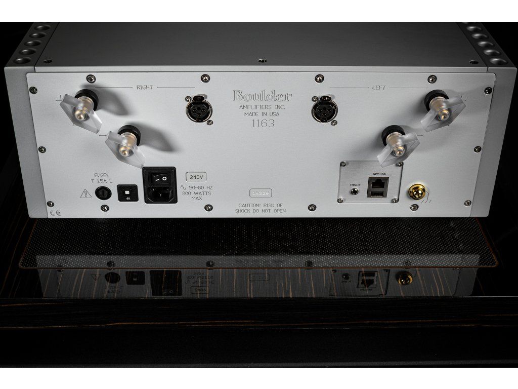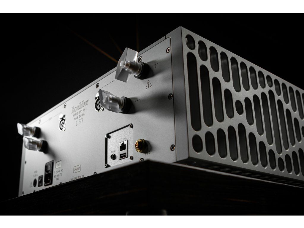 Vyvážené vstupné pripojenia a výstupný stupeň ako produktov série 1100. Novovyvinutý ochranný obvod bezpečne a okamžite vypne výstupnú sekciu v prípade skratu reproduktorových káblov alebo poruchy v systéme a umožňuje vyšší výkon. Vynikajúce spracovanie signálu a rozlíšenie dosiahnuté vďaka vlastnému zosilňovaciemu stupňu Boulder 985, rovnako ako vo väčšom stereo zosilňovači 1162.