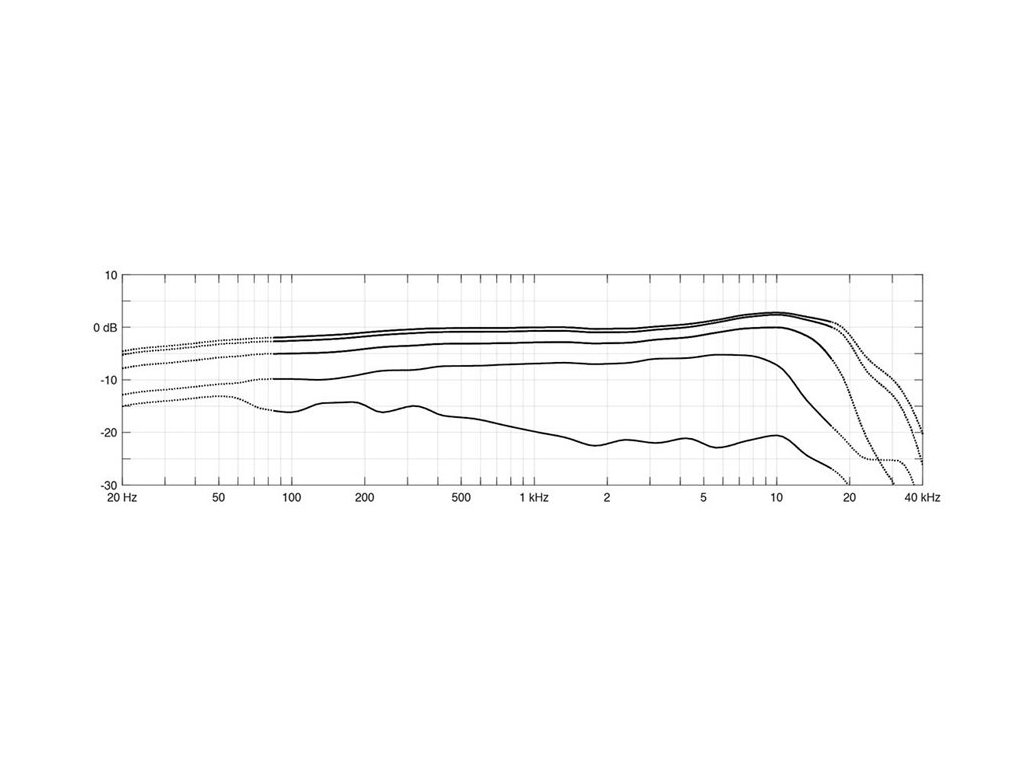 - Efektívny frekvenčný rozsah ±2 dB, pri 20 cm (7,9 palca): 80 Hz – 17 kHz s jemným zosilnením o 2 dB pri 10 – 12 kHz