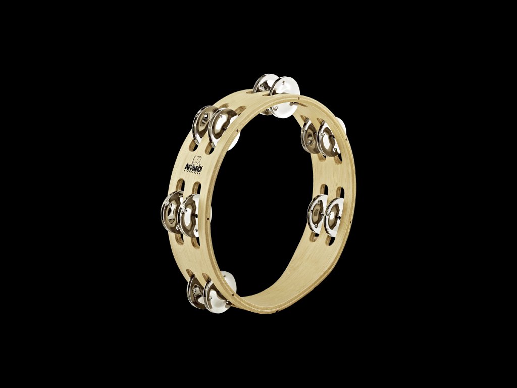 NINO TAMBOURINE 8" 2 ROW WOOD NICKELSILVER JINGLES