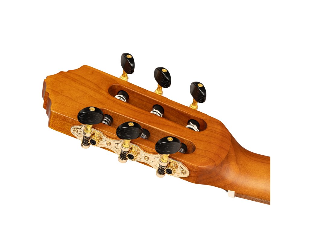 Naše modely s tepelne upravenými nylonovými strunami využívajú proces, ktorý premieňa urýchľuje starnutie dreviny. Zahrievaním vo vákuovej komore sa odstraňuje vlhkosť a živice v procese, ktorý by inak trval desaťročia. Výsledkom je drevo, ktoré je ľahšie, tvrdšie a pevnejšie, pričom si zachováva výnimočnú tónovú odozvu a rezonanciu. Tento proces tiež dodáva bohatý jantárový lesk a vintage estetiku.