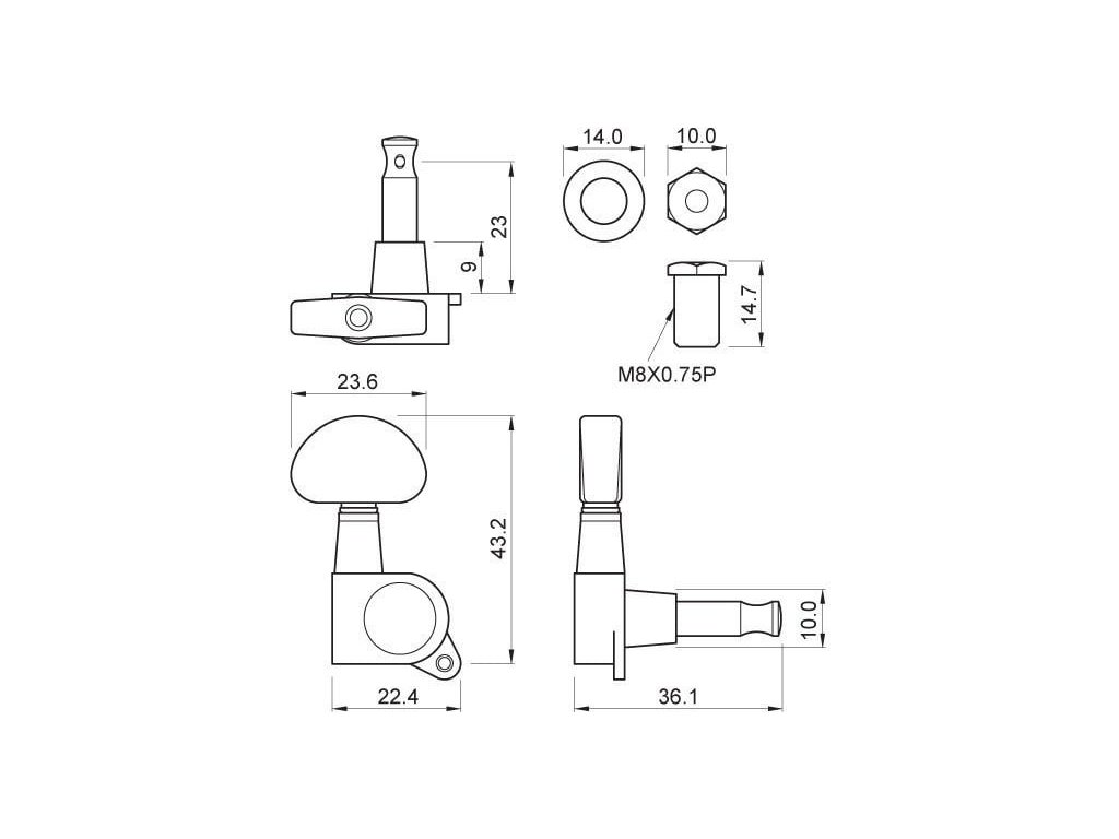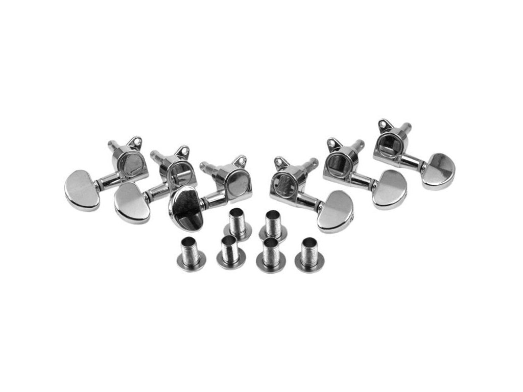 Sada ladiacich mechaník od značky Partsland, vhodná na elektrickú gitatru, grover style, 3+3, prevedenie Chrome.