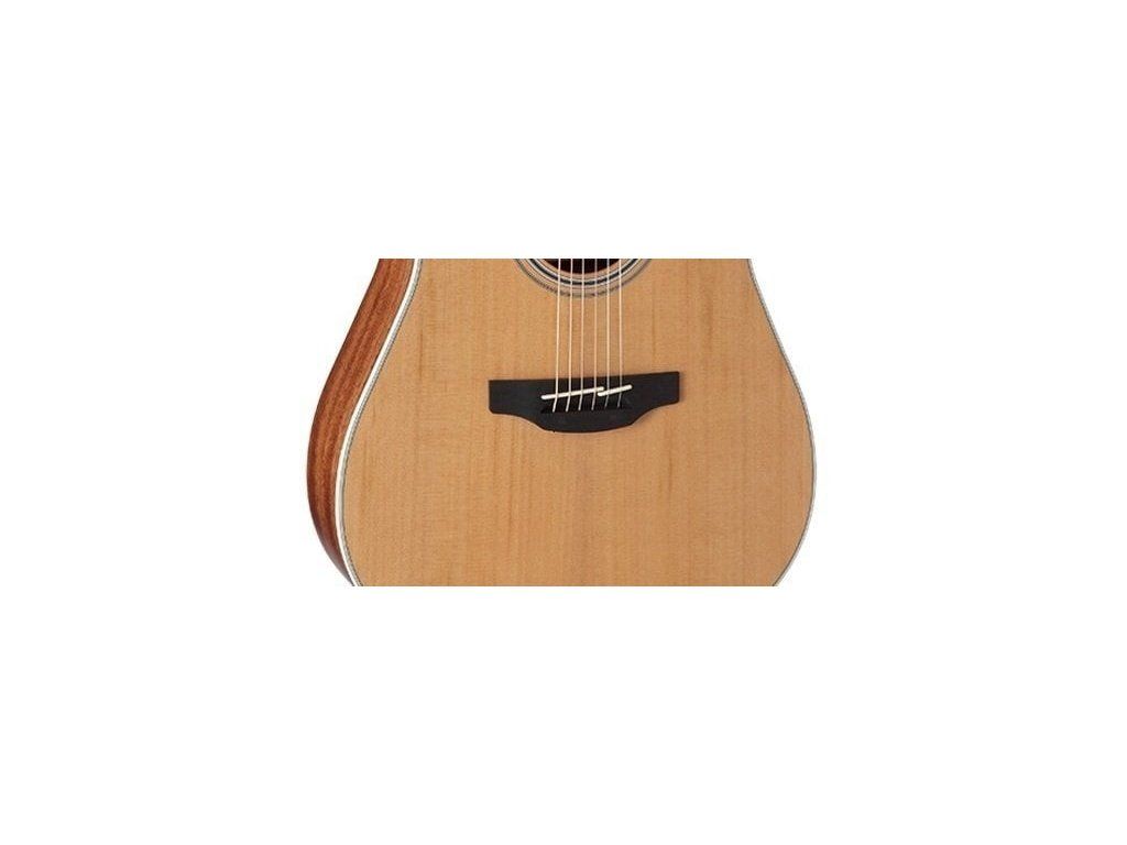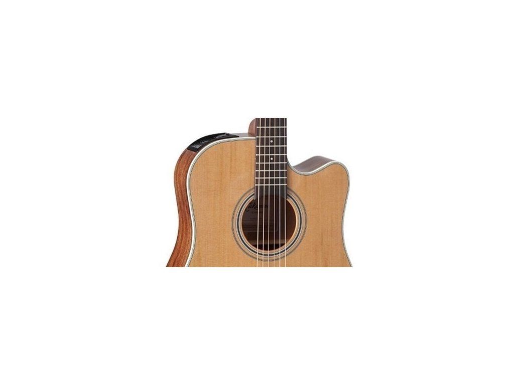 Elektroakustická gitara s telom v štýle dreadnought s jednoduchým výrezom vyrobeným zo špeciálnej kombinácie dreva a patentovanej elektroniky Takamine, ktorá poskytuje teplý, detailný tón a mohutný, bohatý zvuk vhodný pre širokú škálu hudobných štýlov. Zadná doska a luby gitary sú vyrobené z mahagónu, vrchná doska je z masívneho cédrového dreva.