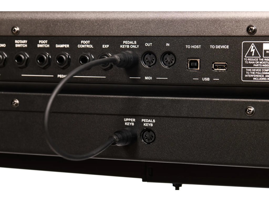 - MIDI pripojenia: Horná klávesnica / Pedálová klávesnica