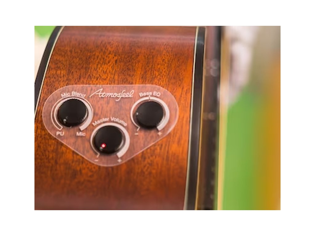 Ovládacie prvky predzosilňovača Atmosfeel™ vám umožňujú zmiešať zvuk mikrofónu s vopred namixovaným zvukom snímača. Zvuk mikrofónu dopĺňa najmä sólových interpretov a akordistov, zatiaľ čo nižšiu zmes môžu uprednostňovať fingerstyle hráči a gitaristi, ktorí potrebujú vyniknúť v celej kapele.